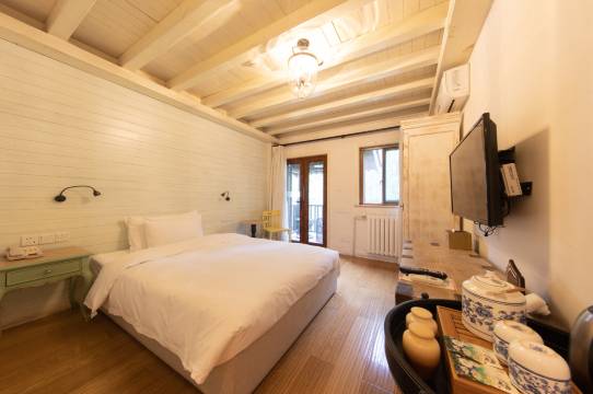 客栈位置于水镇中心,离广场,山水城 长城都不远,可随时出来观看各种演出,B 家庭房是一室一厅一卫,空间独立,适合两代人出游,关上门互不干扰,喜欢窗外小镇的景色,餐食很棒,水暴雨必须吃,老板亲切随和,满足不同旅客的需求,还会再去。
