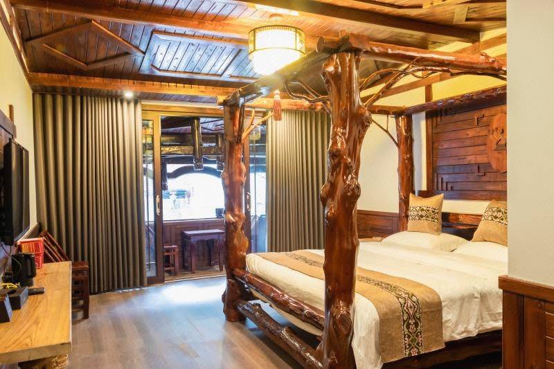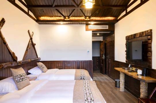 酒店外观古韵浓郁,内饰将古典元素与现代居住理念相融合,清雅别致;客房宽敞舒适、色调柔和,房内配置暖气、24小时热水、独立卫浴等设施,打造惬意休眠空间。