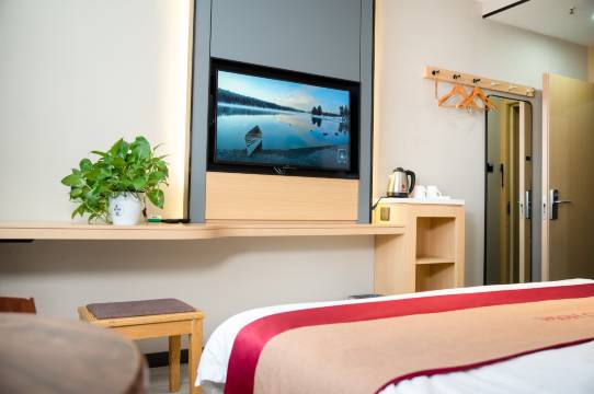 房间卫生不错,前台服务人员接待很热情服务很周到。房间很细心的还放了一盆绿萝,房间里很暖和。就是整体空间不大,早餐种类少,有鸡蛋、小花卷、蛋花汤、包心菜凉调四种。另外卫生间干湿分离不够,洗个澡整个卫生间地板都是水,很滑,幸亏还放了一双拖鞋。