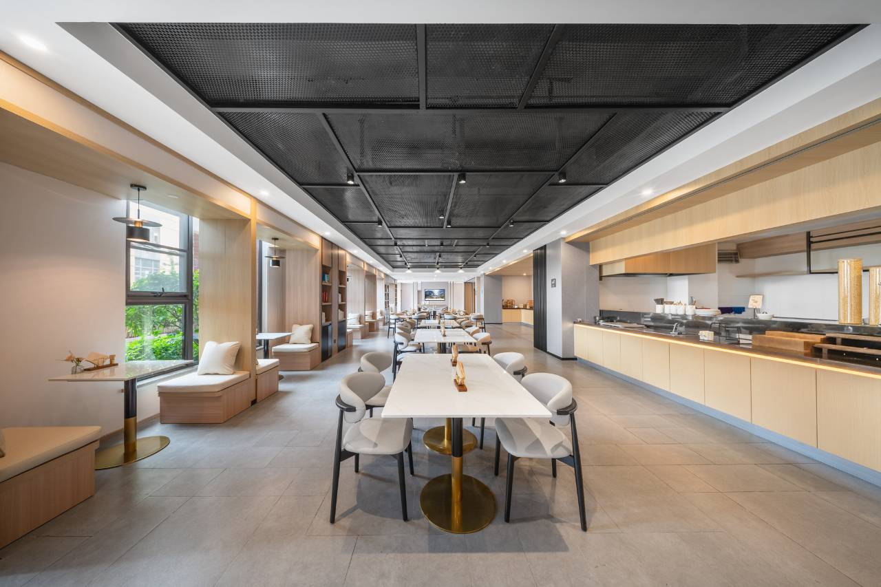 整体体验超出预期,性价比很高。房间面积适中,布局规整,商务办公区的书桌宽敞且配有护眼台灯,很适合短暂出差办公。床品干净柔软,隔音效果不错,窗外的城市夜景视野开阔。卫浴干湿分离做得很到位,热水供应稳定,洗漱用品是简约的草本款,使用感舒适。唯一的小不足是房间的遮光窗帘略有缝隙,清晨会有微光透入。
