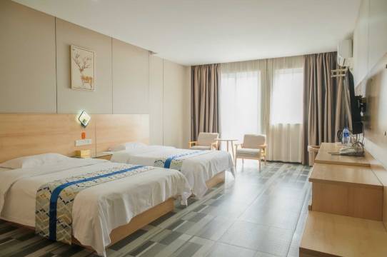 紧靠县医院,离吾悦广场也近。新装修的,环境不错,背靠小区也很安静。房间足够大。配备了一次性拖鞋和洗澡拖鞋。早餐也还可以,这个价位性价比算很高了。