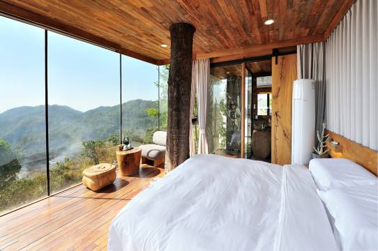 在山海云宿可以处处感受到创意、野奢、适合现代人居住审美的建筑理念。