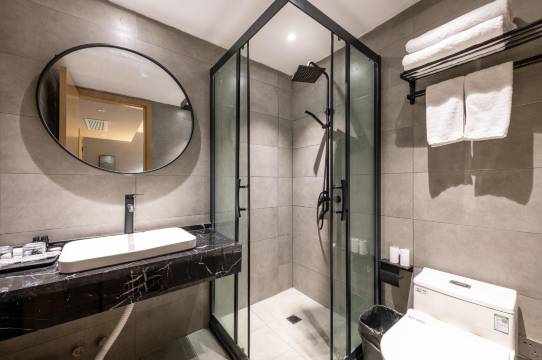 酒店房间装修温馨现代,每间客房均配有浴室、数字电视、热水、空调等基本设施,风格简约而舒适,让您感受家的舒心,是您商务出行的理想选择。