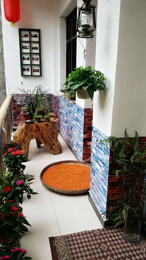 古镇里羌族风格民宿,布置的很温馨,一共定了两间,每间都带露台。车停在游客中心,老板骑电车来接,服务周到。房间安静,睡得很舒服。