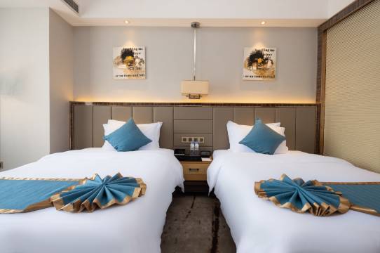 过年探亲住了这家酒店,整体环境都不错,双人间满房了定了单间免费升级还加了被子,床也够大不会拥挤,早餐挺丰富的,有地方特色,交通便利去哪都挺近,万象城,青秀山都离得不远,停车免费真不错,总体来说满意👍