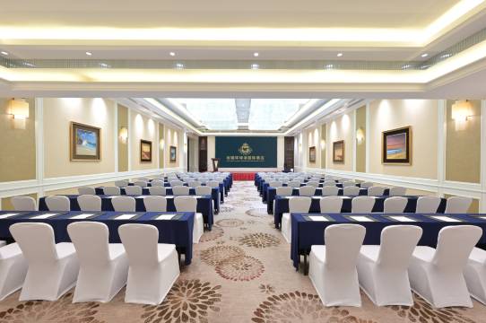 酒店拥有大宴会厅及5个多功能厅,配有国际先进的音响及视频等系统,设施设备完善产全。800m²大宴会厅,50m²巨型LED。