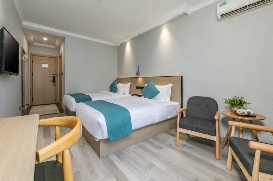 酒店以简约时尚的装修风格,搭配乳胶床垫、高针织床上用品、途悦高端洗沐乳液、大尺寸液晶电视、无线WIFI覆盖等设施配套,营造出犹如归家般舒适温馨环境,全方位提升您的入住体验,令您享受商旅时光。