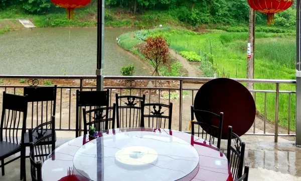 在景区里面,很安静的地方。房间干净卫生,环境不错👍 特别适合周末出来放松一下,他们家做的信阳菜也很地道,用地锅烧的,做的焖土鸡,南湾鱼很赞,吃住一体,好适合朋友小聚地方。