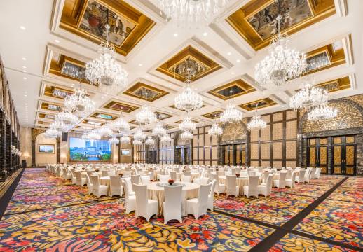 1间1400平方米、8.5米超高空间的大宴会厅,以及4间配有高端音响视听设施的多功能厅,是您公司会议、婚礼宴请的理想场所。