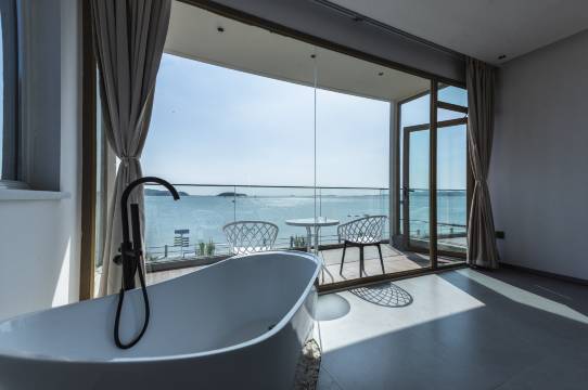 风景极佳,室内宽敞明亮,老板接送,可做海鲜,老板热情,值得推荐!照片和实景一致
