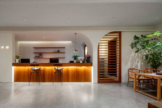 为了赶次日早班机,半夜入住了临近机场的这家桉树林主题酒店,从车上下来映入眼帘的酒店门楣在宁静午夜的潮热空气中颇为清新。拉开个性独具的对开木门,前台美女轻言细语且不失热情地接待、办理入住、安排酒店送机服务,一气呵成👍