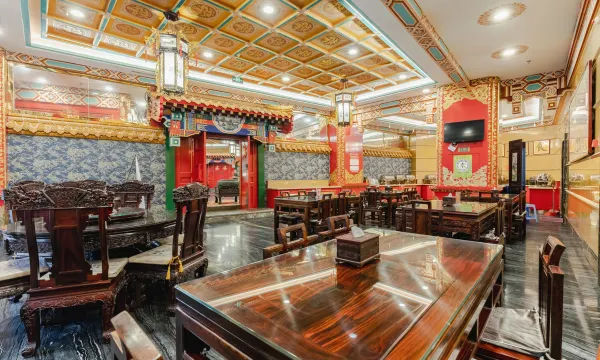 酒店大堂以满清风格装饰为主,搭配宝轩黑酸枝红木家具,大堂左侧是御茶房,为您提供茶道、咖啡、红酒等饮品。右侧是御膳房专业的蒙古族厨师为您提供精致的蒙古族美食,并随时准备为您私人订制各种精美菜肴。