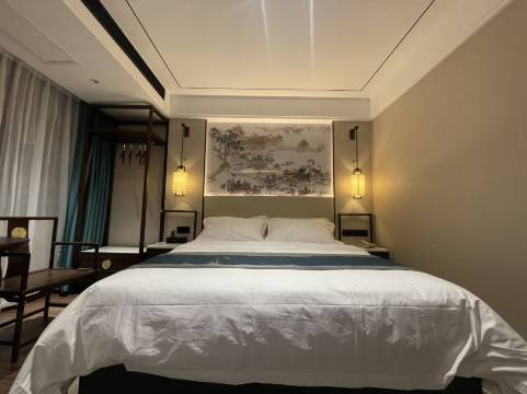 房间是中式风格装修,也比较新卫生也可以,性价比酒店式新中式装修,房间也比较新,卫生也还不错。性价比很高,交通便利。周围吃的也很多