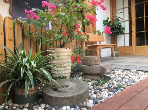 这是一家原木留白风格的设计民宿,由留学国外的设计师设计。酒店采用高品质的设施和用品,部分房间还配备私享花园,适合拍照出片。酒店还提供儿童专用的洗漱和沐浴用品,对亲子家庭尤其友好。