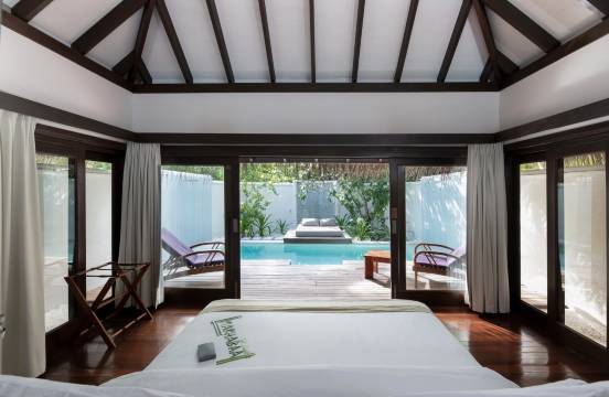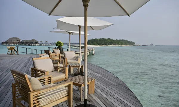 我和先生住的是水上高级房,2米大床,房间宽敞,房内饮用水和咖啡茶,及洗漱用具补充很及时,傍晚会再次打扫换浴巾。房外露台自带游泳池,远眺大海,私密性强,看不到邻居!早晚餐自助餐食丰富,服务生热情、面带笑容,非常友好!推荐Agua餐厅,接待我们的服务生Akram非常友好,闲聊几句推荐了烤石斑鱼和甜点Co Co Chocolate, 非常美味!还帮我们拍了高质量的合影!这座酒店的大游泳池旁能看到很多五颜六色的大小鱼,即使我水性一般,也可以轻松在这里浮潜!我们一共住了6晚,非常舒适、静谧的一家酒店,虽然我和先生语言无障碍,但管家也有中国人。接待我们的是Coral,一个来自四川的漂亮妹妹,全程服务贴心,推荐!