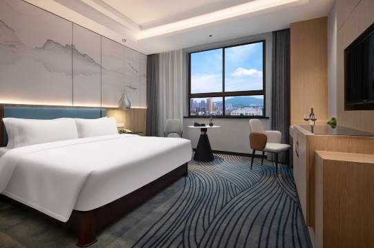 酒店地理位置很好,环境很好,房间卫生干净,有个大大的落地窗,很是喜欢,拉开窗帘采光视野都很赞。空调效果也很好,这大热天的进去几分钟就感受到了冰冰凉。前台接待人员服务热情,细心,退房的时候会主动帮忙扫停车券。早餐品种多而且味道都很好。性价比很高的一家店,推荐哦
