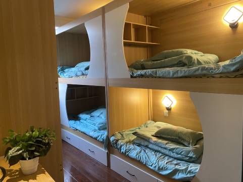 房间是上下铺,小朋友们非常喜欢,离古城非常近,有个大院子可以停车,出门就是沿河路,风景非常好,适合穷游的朋友们