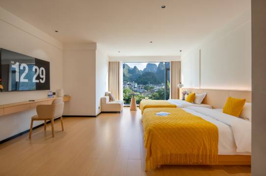 房间卫生整洁,最主要是安静,风景也很好……第一次来桂林就有一个就有了一个很好的影响!老板为人热情周到,大爱啊。我们一家三口出来住了亲子房,孩子太喜欢了😘下次还会来