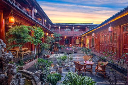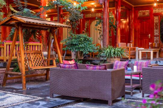 丽江汉邦豪苑酒店属于古城纳西原始风貌民居,经典的“三防一照壁、四合五天井”纳西大户庭院,庭院将纳西文化融入庭院装饰风格之中。庭院内溪水环绕,移步换景、花木扶疏,五彩石、青灰砖瓦无不见证着丽江古城的百年岁月变迁。