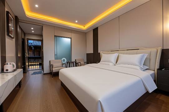 房间是这两年刚装的,设施都特别新。马桶垫是加热的,坐着一点不凉;空调和电热毯都有,晚上睡觉舒舒服服的。位置也绝了,就在古城门口,出门逛太方便了。