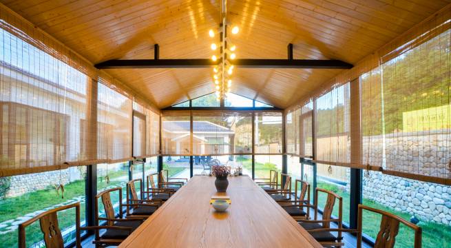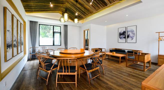 房型设有听松套房、观云大床房等,更有钟秀茶室、茶书吧、茶叶展区,适合接待15人以内的小众客户。房内均配有TOTO卫浴、自动窗帘、日立中央空调、全实木家具,24小时管家式服务。餐饮菜肴更以大别山私房菜,绿色有机而见长。钟秀茶宿,睡在大别山最深处。
