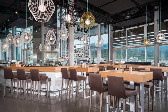 很棒的酒店,尤其是顶楼晚上的酒吧,景色很美,可以望见远方的滑雪大跳台和整个城市的夜景,时不时有飞机从头顶飞过
