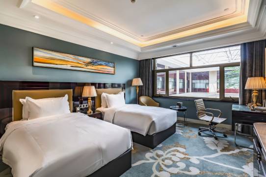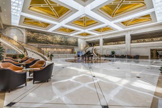 酒店大堂富丽堂皇,订的大床房,房间办公桌超实用,很安静熬夜工作也不被打扰,前台还帮忙打印文件,太贴心了~下次出差还会选择这里!