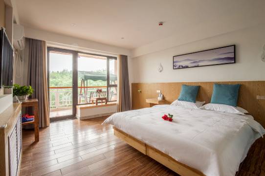 景区的酒店 方便可以停车 有电梯 服务台美女态度很好 离景区很近 周围吃饭也方便 还有一个阳台 阳台上带有 一个座椅秋千 很惬意 不错