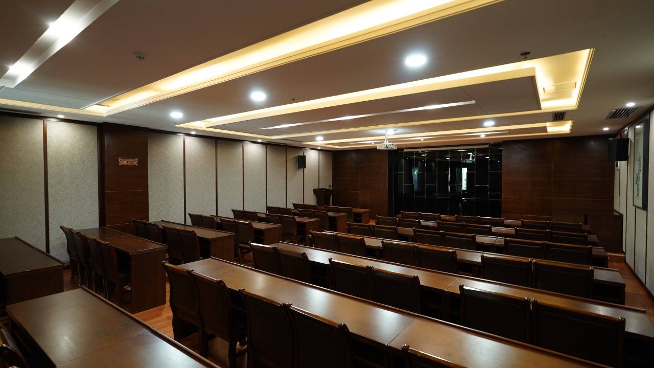 七、会议厅。酒店三层。设有商务会议厅、培训会议厅、洽谈会议厅三种模式,可容纳260人;