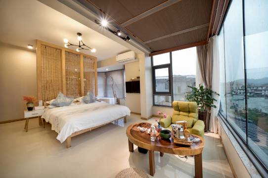 武夷山云舒水境民宿位于度假区观景地段,正对主峰大王峰,是以陶艺文化为主题建造的精品文化旅馆。 设计感十足的原木清新客房,部份房间配备品茶区。公共区域有陶艺美学空间。酒店个别房间还有全观景天窗,白天可以看山景,晚上可以看漫天星星!它没有星级酒店的富丽堂煌但它有着古朴而又时尚的视觉效果。它精致,优雅的装修有一种低调的奢华。在这里闭目茶香意韵鸟语花香,呼吸原木里的温柔和清新空气。享受一份返璞归真的生活。远离大都市繁华的灯红酒绿,寻一处世外桃源的宁静与淡然。