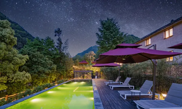 夏天山里可真凉爽,泳池很大水也干净,小朋友们玩的很开心!在民宿用了2次餐都很满意!房间的绣球花真美,窗景也很好,让人身心很放松