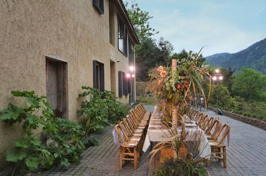 🌳环境真的非常棒!需要经过吊桥才能到达民宿,有种与世隔绝的静谧感~山景特别漂亮,傍晚看到了很美的晚霞~房间门口和窗外望出去就是山景,非常放松心情,卫生也打扫的很干净,管家小哥会提前联系沟通入住,服务非常好~