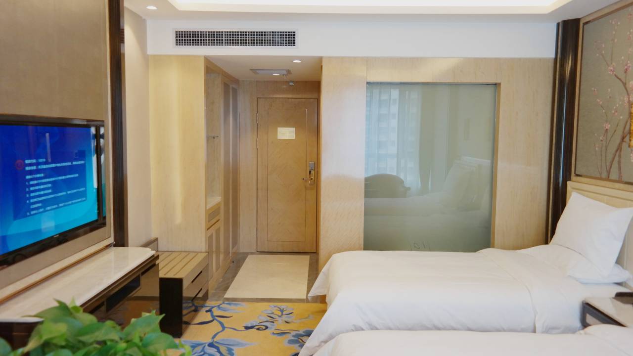 房间的大床尺寸宽敞,床垫软硬适中,腰部支撑到位,整夜翻身没有噪音,醒来后肩颈腰都挺舒服的。卫生细节令人安心:地毯无污渍,浴室水龙头擦的亮,毛巾也挺干净。