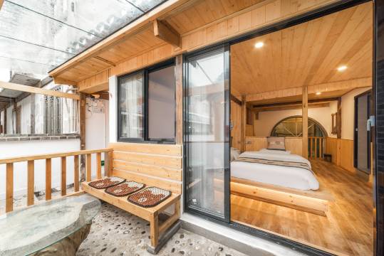 民宿位址在古城西门外,步行几分钟就到古城。原本是因为古城里面民宿太贵了才订的外面,结果越想越觉得住在外面是特别明智的,因为安静,因为窗户面对着田地和远山,完全不用担心会被窥探。窗帘都是遮光的,晚上关上窗户特别安静,其实就是开着窗户声音也不大,睡眠质量超级好。空气超级好。前台和老板都很年轻,特别友善谦虚,还给我们送了免费的老冰棍,味道特别好。我个人认为这个民宿更加适合老人和家庭出游,因为都是木头和瓷砖的装饰,一看就花了很多钱,很大气,二楼有个小平台,可以喝茶,荡秋千,晾衣服。全部都是木头做的,给人能量,不像塑料和混凝土,让人不舒服。真心希望这个民宿得到越来越多人的喜爱,希望老板生意越来越好。