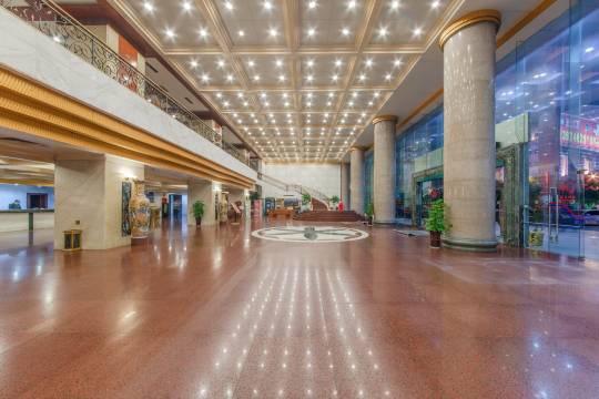 空间还比较大,就是旧了点。南华酒店早餐很不错,品种很多很干净卫生,电梯也比较快,晚上房间很安静,大堂很大