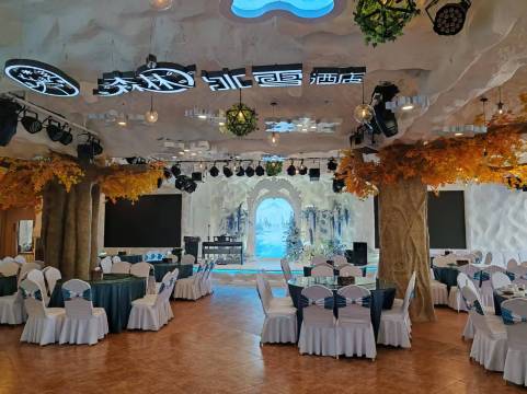 酒店大厅位于一楼,二层至五楼共有客房75间,按风格分为:森林主题客房,冰雪主题客房两大类,其中包含套房八间。一楼为酒店餐厅。酒店配有室内停车场等基础设施。五层新装修智能森林主题标间。整体装修选材上为自然原生的环保材质。欢迎全国各地朋友!