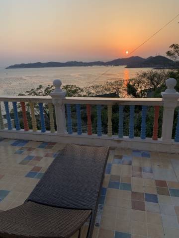 民宿比较高,要爬一些楼梯,但是到了后发现景色真的挺不错,从阳台可以眺望海上牧场,阳台可以晒衣服,阳光充足,空气很好。老板娘做的海鲜面和蛋炒饭很不错。就是卫生间下水有些堵,洗一会就汪着了。离东崖绝壁近,四点半出门步行去看日出正好。