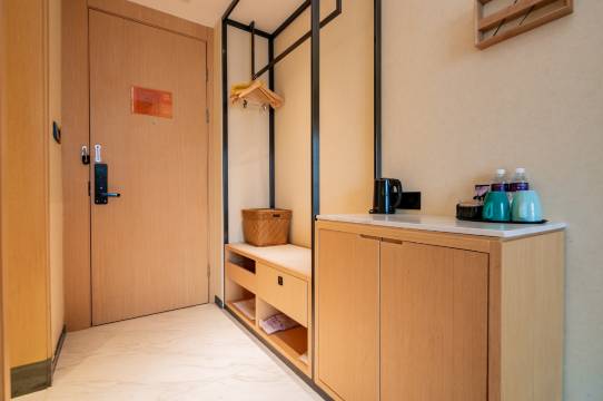 住宿体验很好,进门就有只可爱的狗狗,聪明又热情,好喜欢,很少看到酒店有狗狗,挺特别。工作人员态度也很好,房间干净可爱,睡得很舒服,离高铁站很近,总体来说很不错~下次有需要还会来,推荐