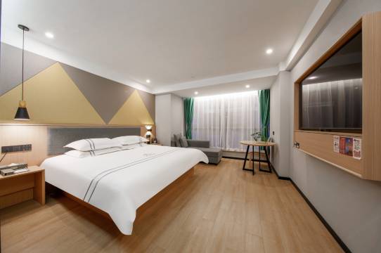 很满意,房间很干净,看着很舒服,很喜欢,还有化妆镜,全身镜,偏商务酒店女生来入住很合适,😊😊喜欢,而且房间隔音,空调都很不错,下次还想来住,前台夏夏小姐姐,服务态度非常好,见人微笑😸推荐去哪玩