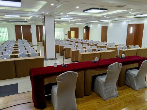 目前宾馆拥有各类客房110间,房间均设有独立卫生间、壁挂彩电、TM电子门锁、空调,24小时热水服务,并提供停车、长、市话、宽带及WiFi。五六楼房间全部配备大尺寸床型,全套定制慕思床垫,全屋智能,名园餐厅装饰典雅、简洁明亮,一楼名园宴会厅可容纳260余人同时聚餐,二楼特色包厢12个。名厨为您精心烹制独特的粤、湘、川和地方美味佳肴。同时专为自驾游、团队游宾客提供系列特色套餐。宾馆有可容纳260余人的会议中心1处,小型会议室1处,供您举办各类会议。商务中心为您提供打字、复印、服务。