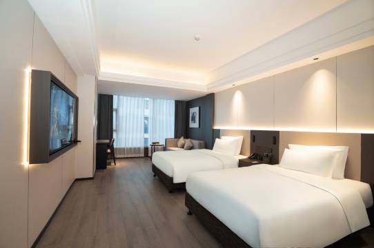 位置优越,出行便利,门口有免费停车场。房间装修精致,空间开阔,采光好,全屋智能客控科技感十足。床品柔软舒适,卫浴干净无异味,洗漱用品品质在线。隔音效果出色,环境安静不嘈杂。酒店配套齐全,有健身房、自助洗衣房、会议室,满足不同需求。服务贴心周到,性价比拉满,不管是商务出行还是旅游度假都很合适。