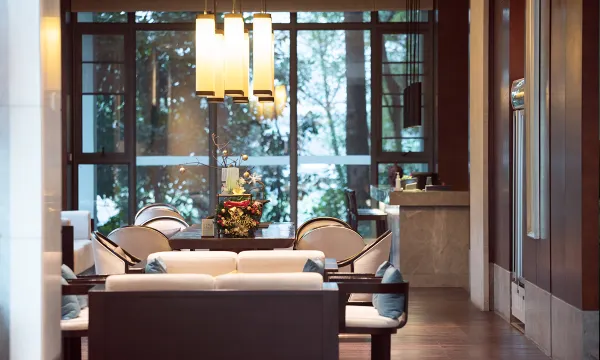宾馆始终秉承“自然·原始”的原生态理念,总体布局依山傍水,足不出户,即可领略馆内无与伦比的自然环境。身居室内,即可领略房在景中,景随人驻,被著名作家金庸先生誉为:每一扇窗户都是一幅风景画!