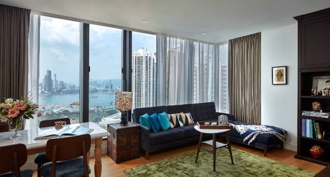 房间宽敞明亮,眺望维多利亚港。房间内配备小冰箱微波炉等设施齐全,可简单煮食。公寓的所有staff也非常友好nice!