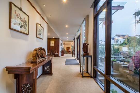 客栈建筑粉墙黛瓦,有假山池塘,有鸟语花香,文化氛围浓郁,身处市中心地段却闹中取静。房内均为定制红木家具,进口高仪卫浴,并配有24小时新风系统。不管您是出差还是游玩,都能找到属于您的风景。