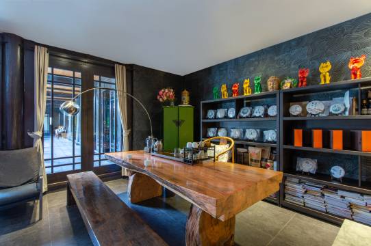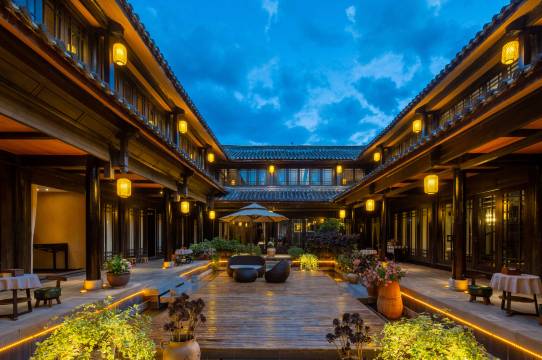 别院总占地面积为1200平方米,是典型的纳西族三房一照壁的四合庭院,客房设计融入了中国及东南亚原素,设计师大胆地将不同种类的中国元素加以改变,营造出经典、大气、优雅却又不失风味的气氛。