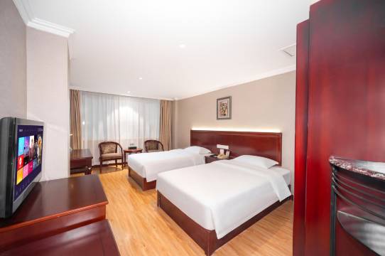 酒店房间卫生干净整洁设施也齐全,床品也舒适睡得很好,前台服务也热情周到,门口就有公交车站出行也比较方便性价比高。