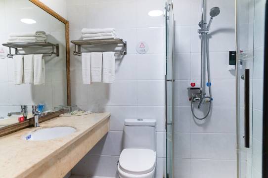 宾馆客房布置考究,装修简单大方,淡雅的房间内饰,给人一种清爽的感觉。基础配套设施完善,柔和的灯光、洁净的卫浴、舒适的房间温度,营造出一个宜居的生活环境,您可在此卸下舟车劳顿后的疲劳,安心休憩。