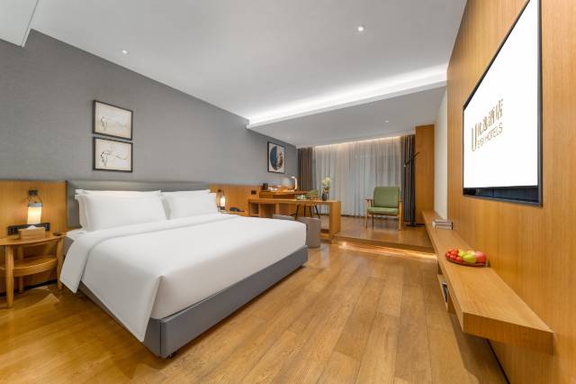 这是一家集客房、餐饮、商务会议于一体的轻奢精品酒店,由台湾著名设计师亲笔设计,风格时尚新颖,极具个性化,共有商务、休闲、亲子童趣房等百余间单双客房。房内均设有独立调控的中央空调、数字电视及新电子消防系统等现代化设施。