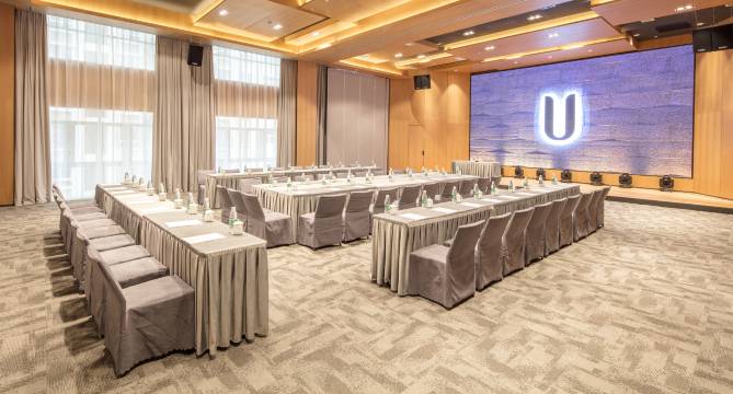 酒店配套一个约400平米可容纳250人的多功能厅,配备多媒体视听系统LED屏等先进设施,满足各种商务会议、洽谈签约、新闻发布及各种展示活动的需要。