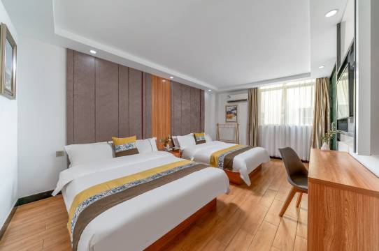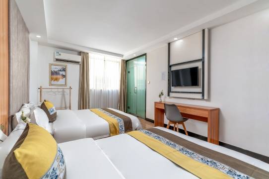 公寓装修简约时尚,宁静舒适,房内配有书桌,高清电视,wifi,冷暖空调,一次性洗漱用品一应俱全,酒店以宾客至上为经营宗旨,热忱欢迎广大宾客光临。